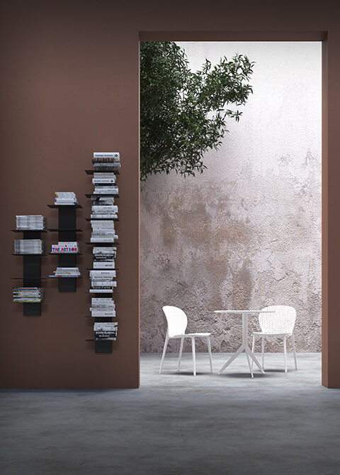 Un oggetto che con la sua intelligente semplicità risolve con discrezione ed eleganza molti problemi funzionali e arredativi. La libreria Witty Wall è realizzata in acciaio finito in quattro colori.