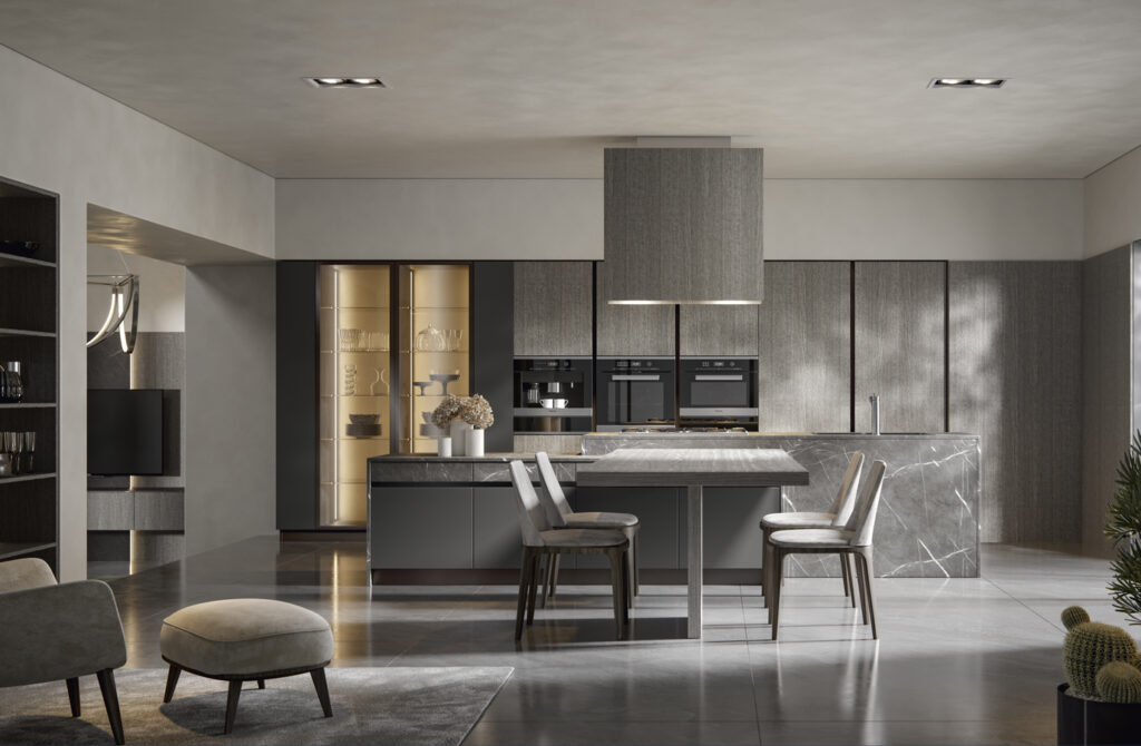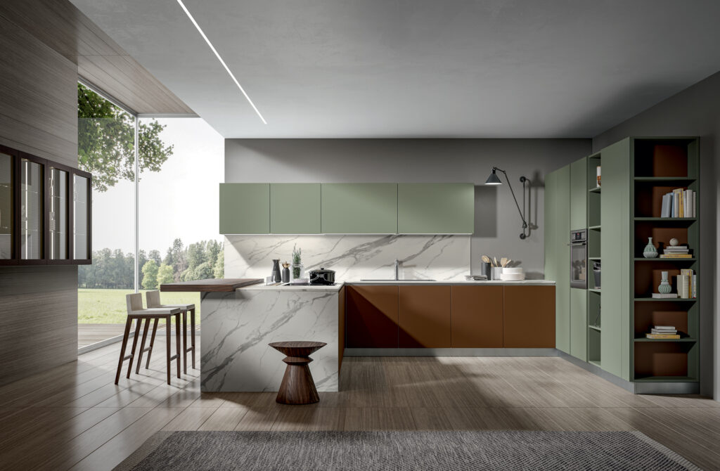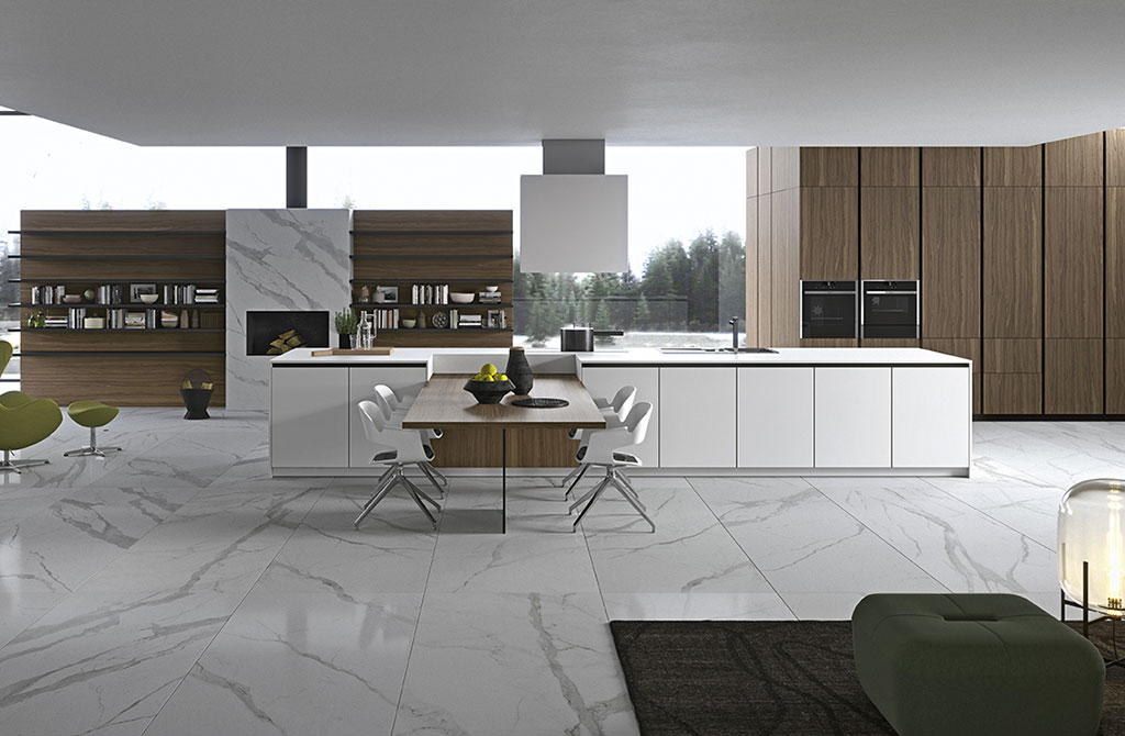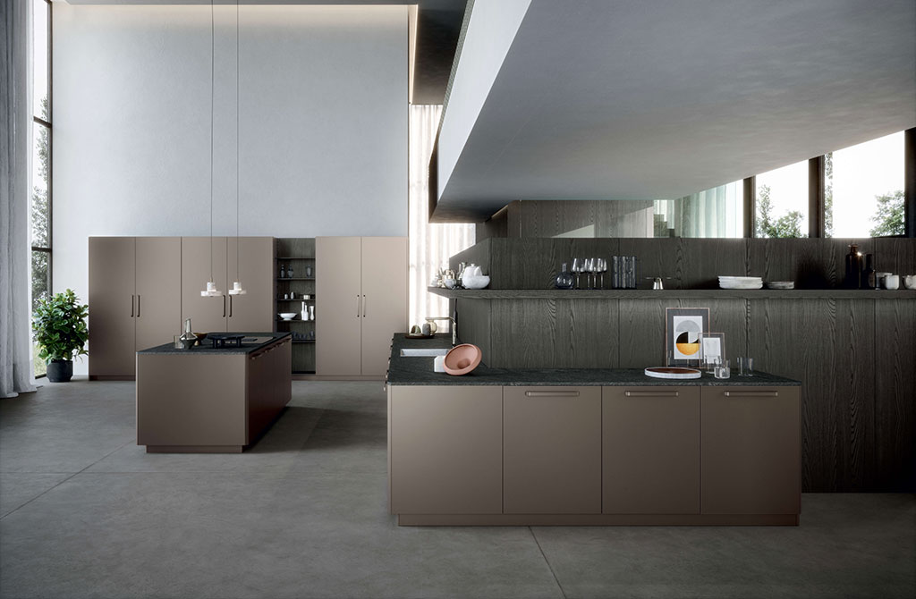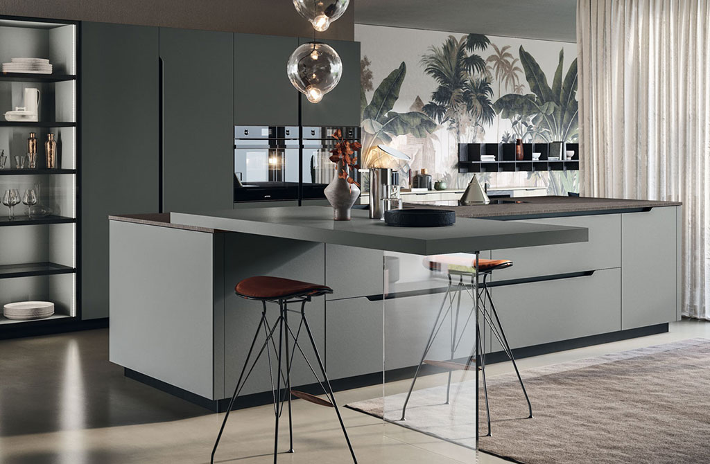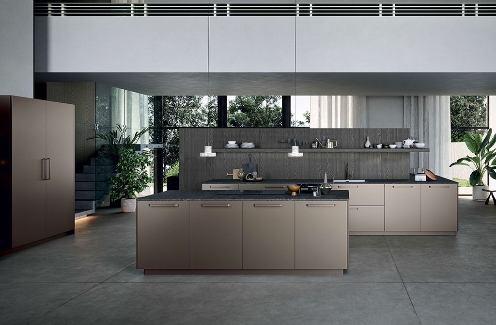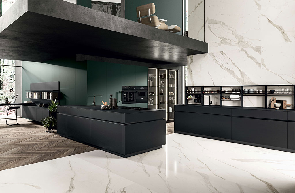Finiture di pregio e materiali innovativi caratterizzano la cucina moderna A22, punta di diamante di tutte le proposte firmate Dibiesse.