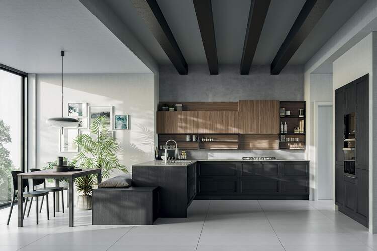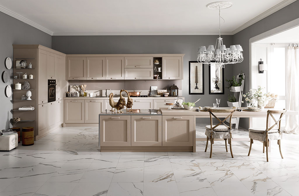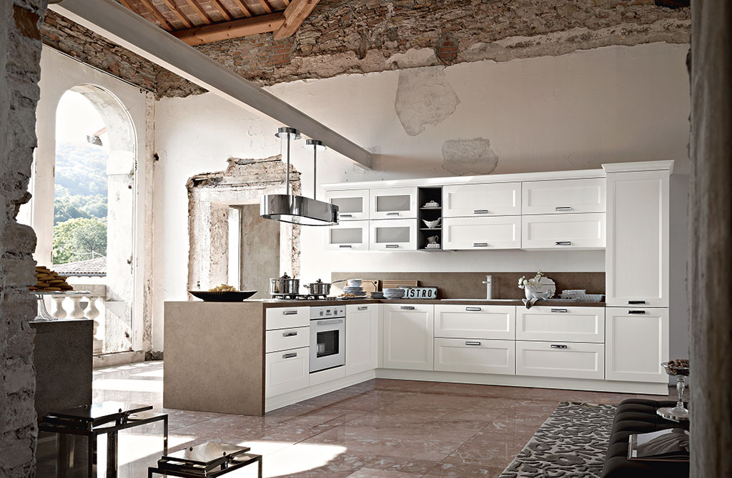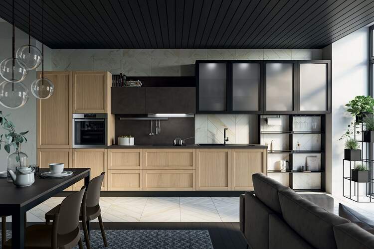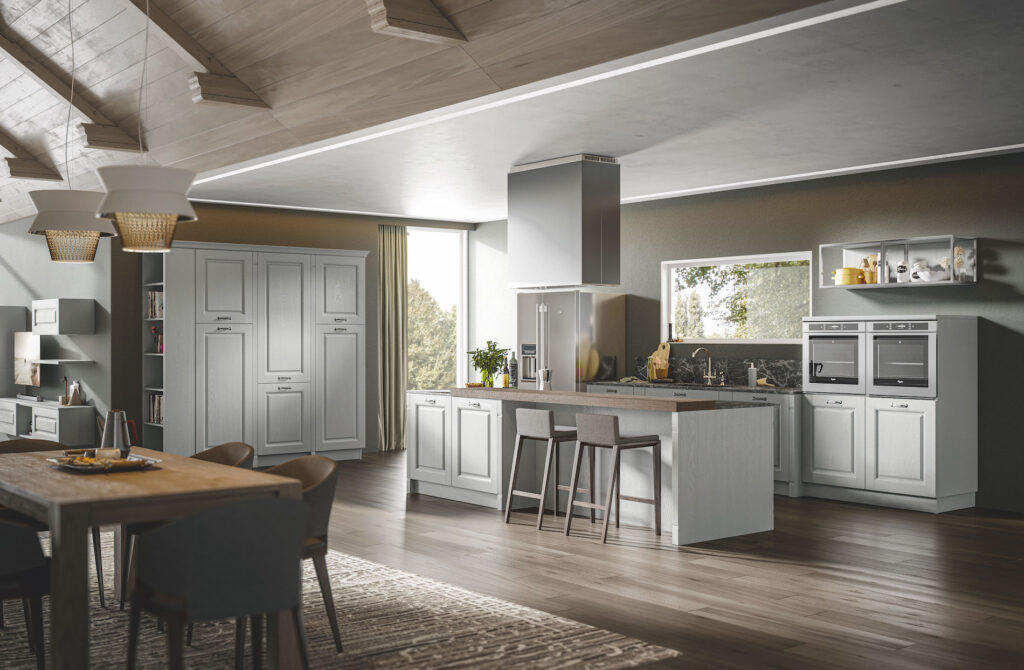 Ami il calore delle cucine d’un tempo, con le ante a telaio possenti e i piani in pietra, oggi in quarzo? La tua scelta è un luogo di ritrovo e vita della famiglia, come sono le soluzioni Maya di Prima Cucine: cucine classiche contemporanee che rimangono attuali negli anni. E hanno un prezzo conveniente. L’anta con telaio in massello ha il pannello impiallacciato, entrambi in frassino e laccati con venature in vista.