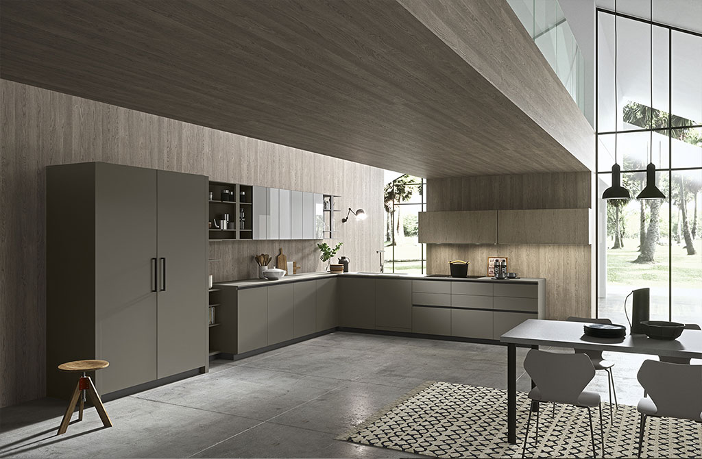 Cucine minimal ed eleganti con Fly di Prima Cucine. Il gusto moderno è garantito dall’anta liscia: un elemento unico con scavato lo spazio per una presa sicura, senza maniglia. Offre la stessa ergonomia superiore della gola che va a simulare e numerosi accorgimenti che rendono raffinato l’insieme, a partire dalle finiture sobrie. Fly sa anche vestire spazi più ampi, per chi vuole avere molto di più ma a prezzi sempre competitivi.