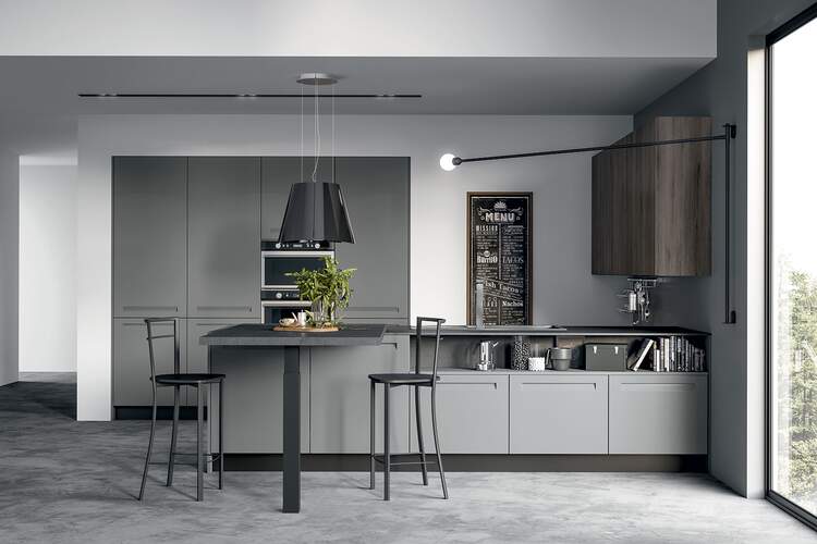 Domino, il primo modello creato da Prima Cucine. Ha l’anta liscia o a telaio lineare per un’estetica moderna, facile da comporre, e un mood duraturo. Da sempre in melaminico, la scelta più conveniente, o in laccato UV, più stilosa, è ora anche in laccato UV opaco (“super matt”), anti-impronta e ben resistente, e in un’ampia gamma finiture.